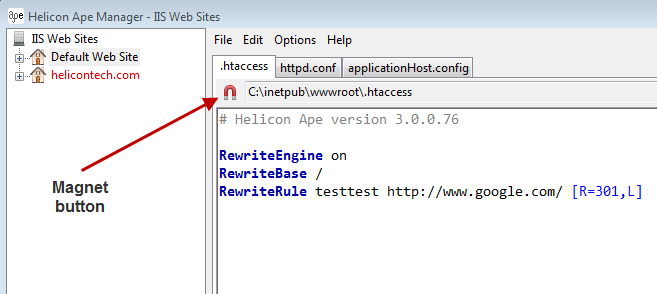 Apart from it’s direct purpose to make editing of Helicon Ape configs fast and handy, Helicon Ape Manager allows to edit web.config files as well.